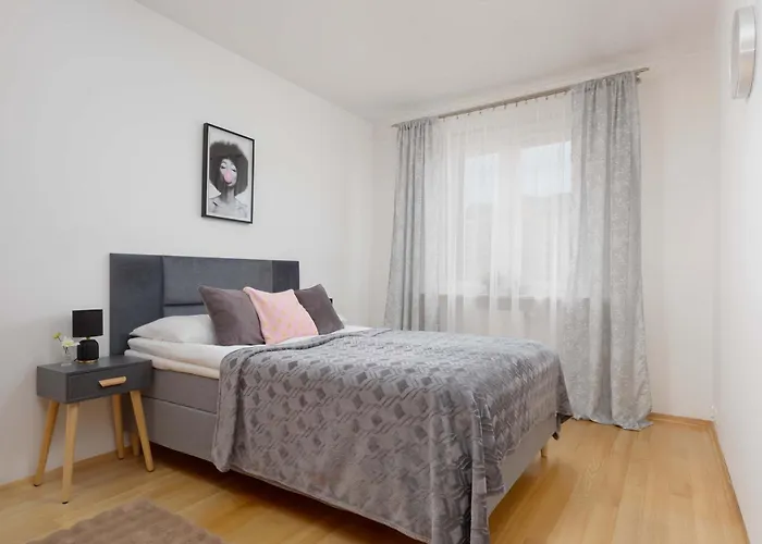 Diese Unterkünfte verfügt über eine voll ausgestattete Küchenzeile, in der Gäste einen Herd und einen Geschirrspüler nutzen können. Der Flughafen Warschau-Frédéric-Chopin ist innerhalb einer 15-minütigen Fahrt von diesem Apartment aus zu erreichen.